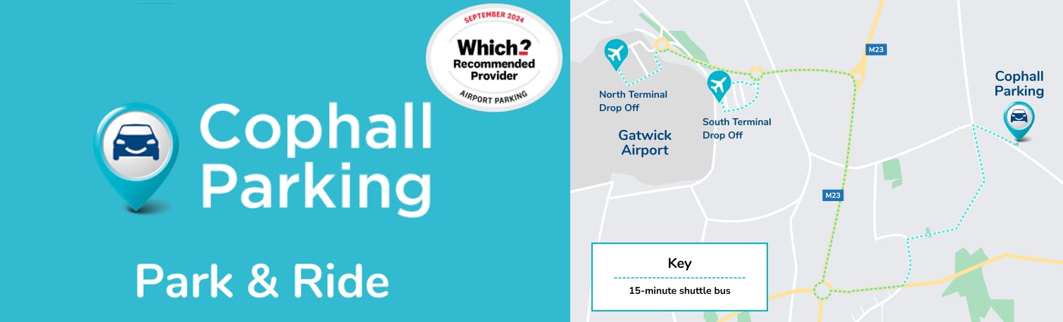 Our cheapest way to park at Gatwick is with Cophall Parking who provide parking for both Gatwick Terminals. They run a free transfer shuttle to the airport which takes about 15 minutes.
